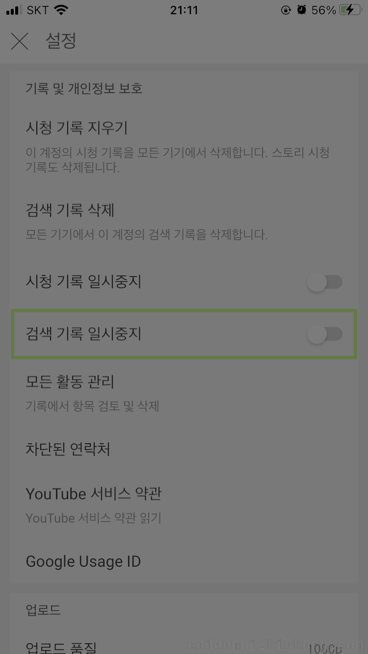 이번 포스팅은 유튜브 앱의 시청 기록을 일시 중지하기입니다.