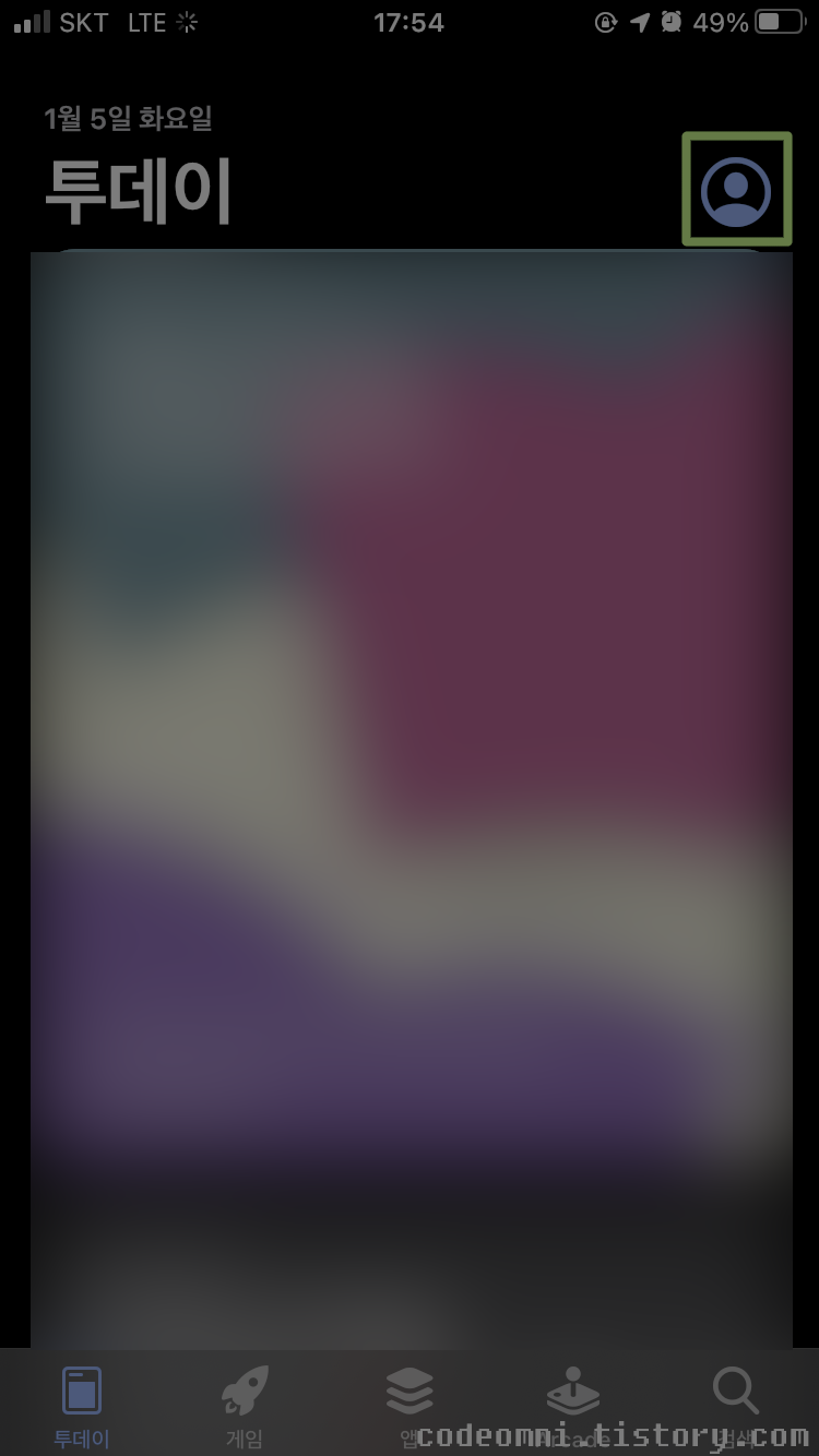 ▲ 앱스토어에서 계정 아이콘을 터치합니다