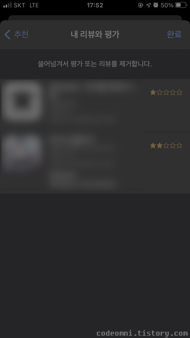 이번 포스팅은 아이폰의 앱스토어에서 평가 및 리뷰한 목록 보기입니다.