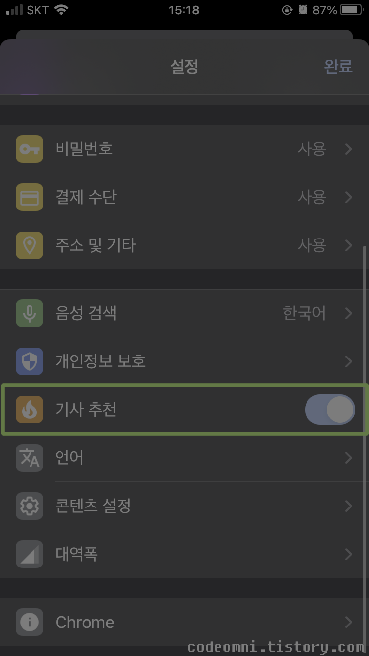 크롬에서 제공하는 추천 뉴스를 변경하는 방법입니다.