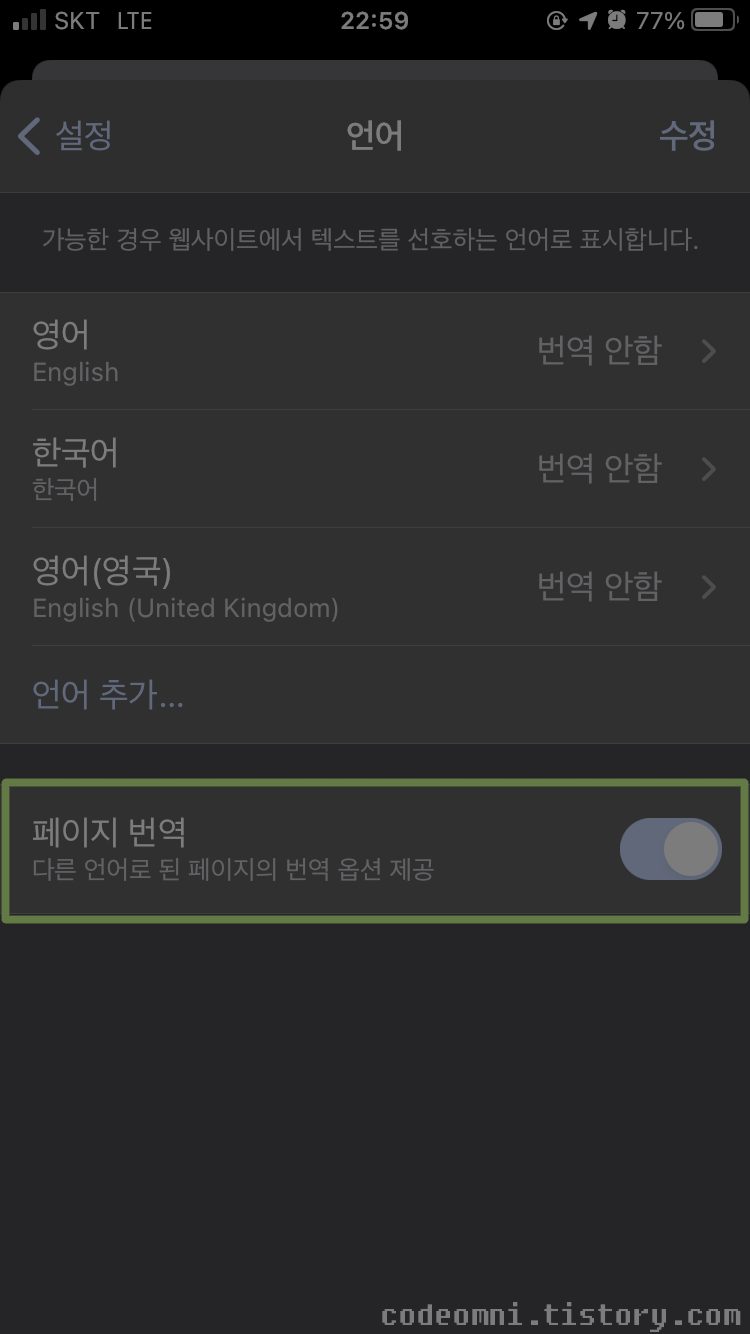 웹 사이트와 홈페이지의 번역을 설정하는 방법입니다.