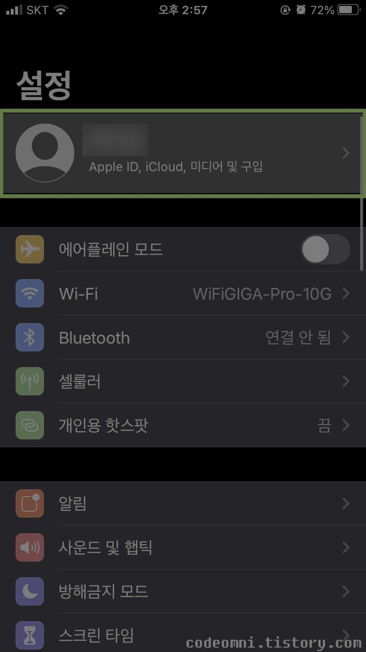 ▲ 설정에서 애플 계정을 터치합니다