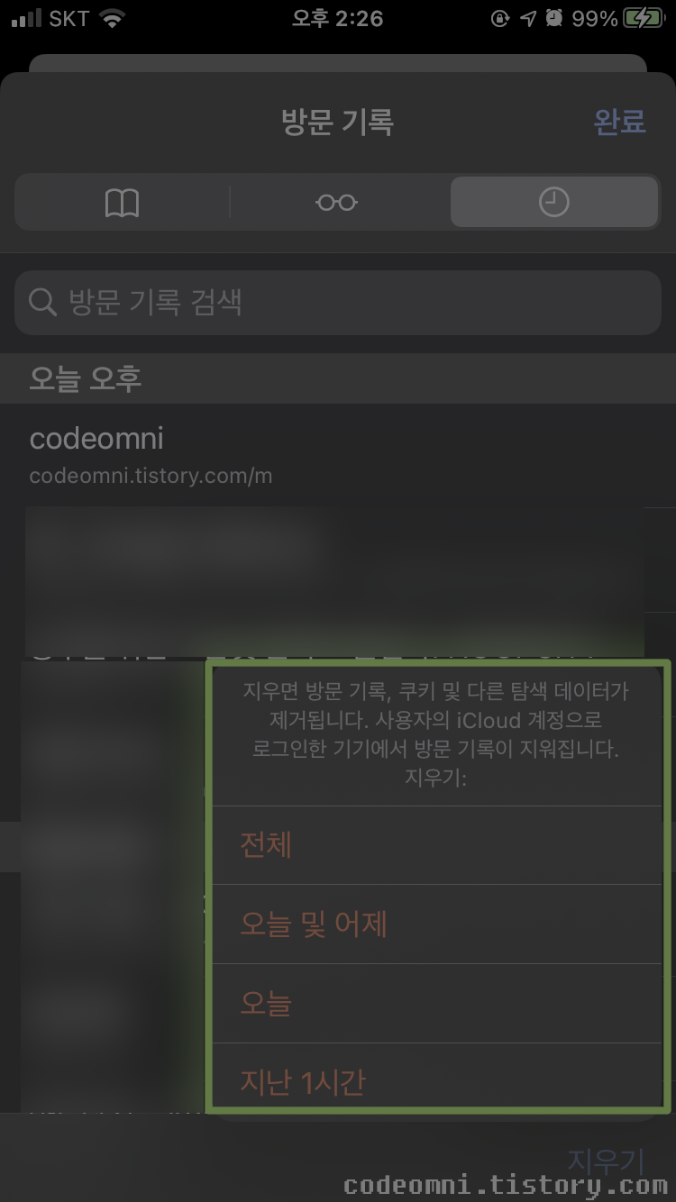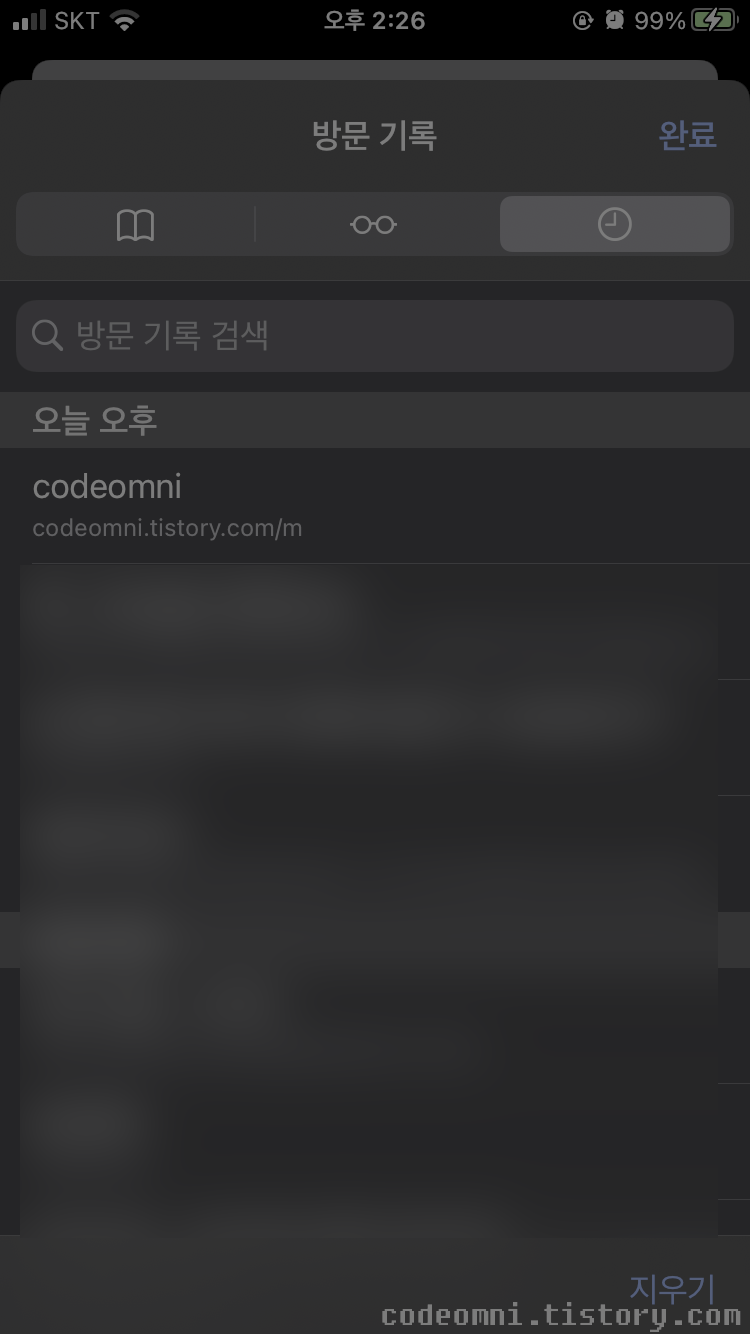 사파리 앱으로 접속한 웹 페이지나 사이트의 방문 기록을 확인합니다.