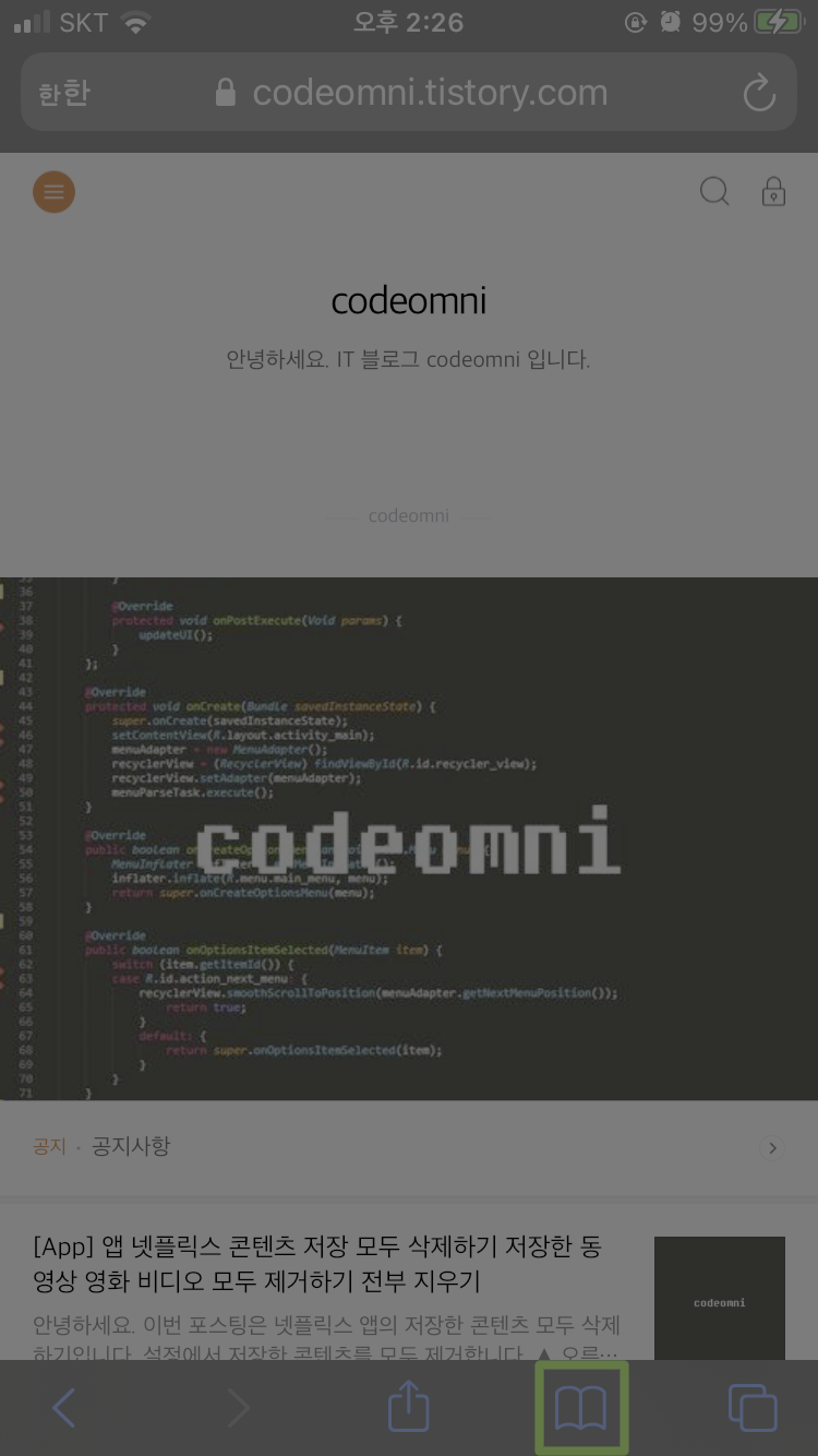 ▲ 사파리에서 하단 바에서 북마크 아이콘을 터치합니다.