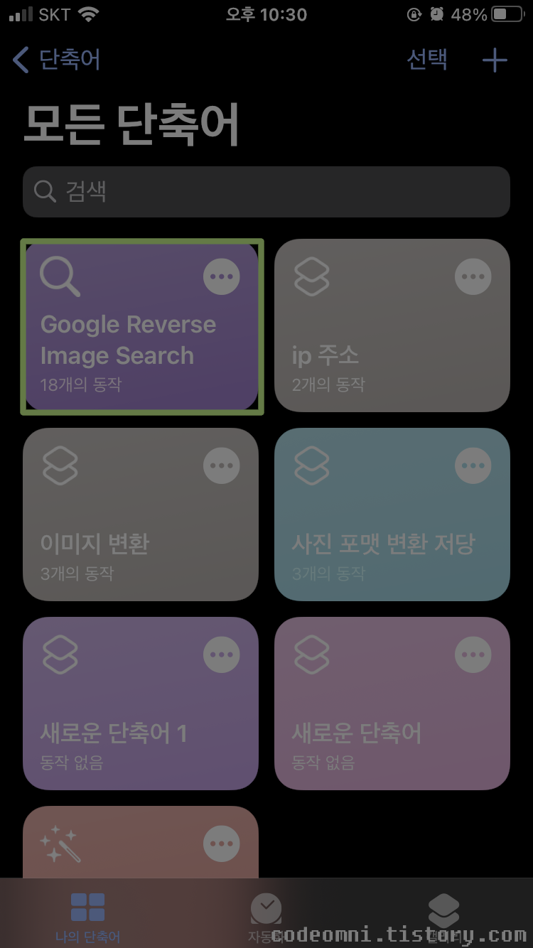 단축어 앱을 통해서 쉽게 이미지 검색을 사용합니다.