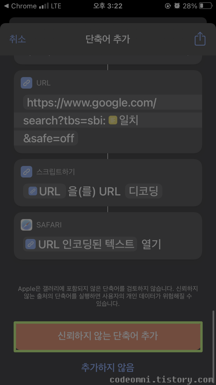▲ 추가된 단축어 Google Reverse Image Search를 터치합니다.
