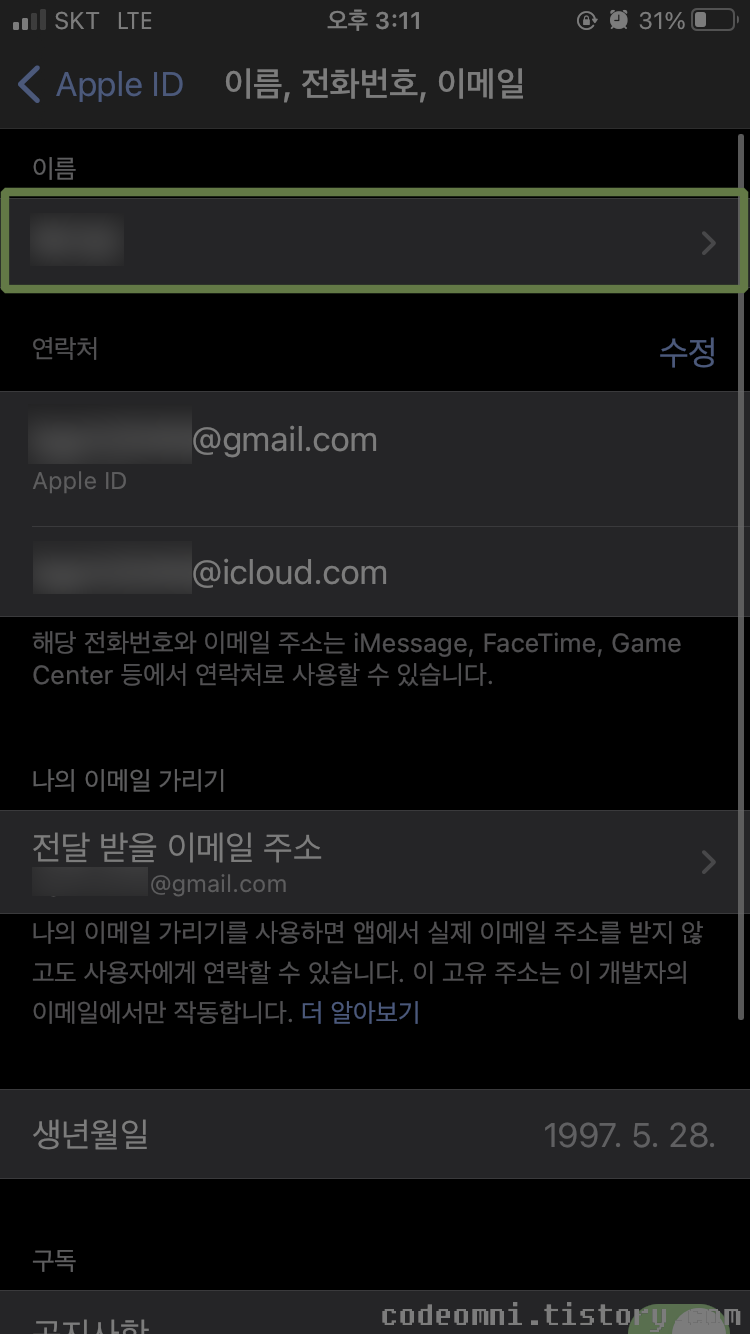 이번 포스팅은 아이폰의 애플 계정 성과 이름 변경하기입니다.