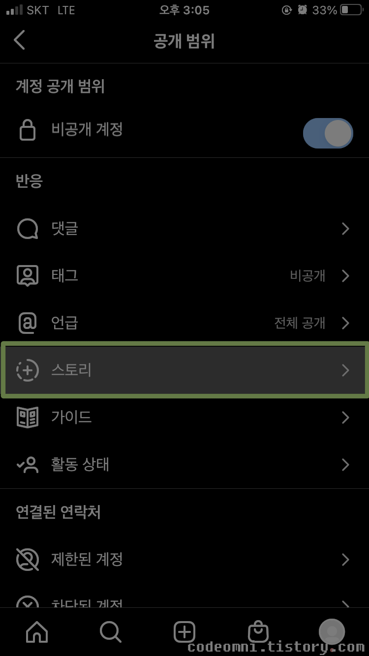 ▲ 내 스토리 숨기기을 터치합니다.