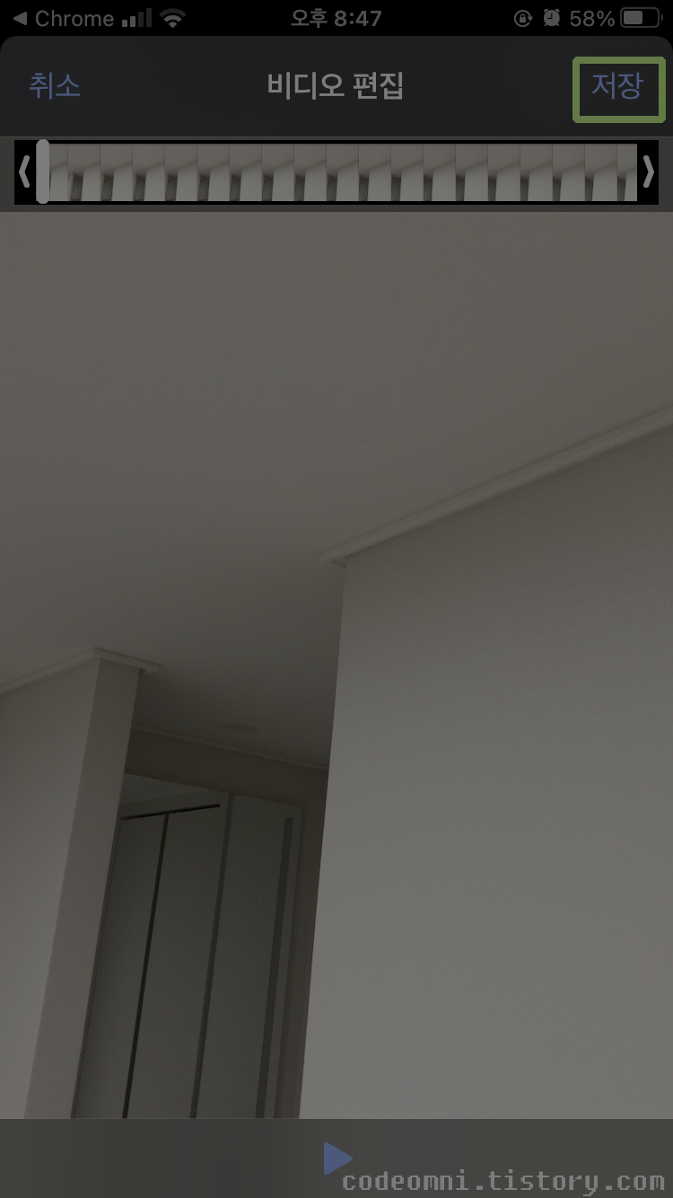 ▲ 상단의 바를 조절하여 구간을 지정 후 저장을 터치합니다.