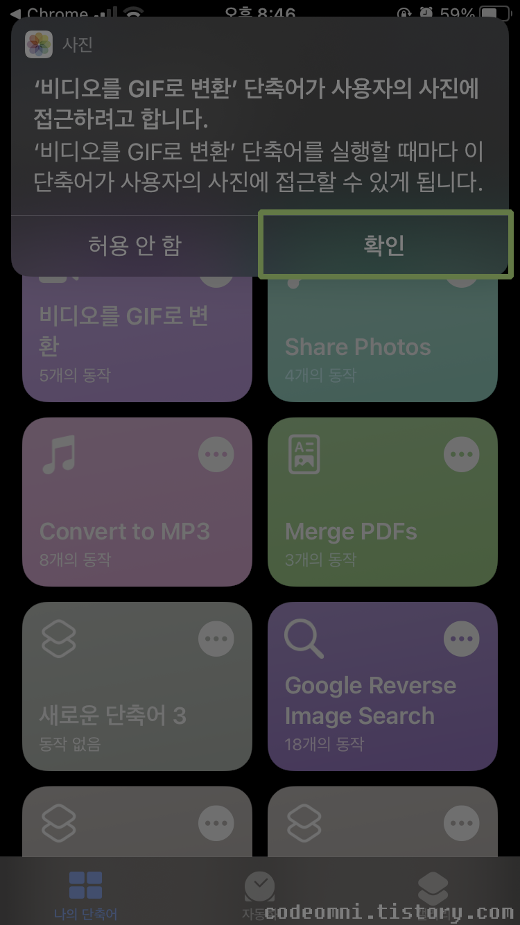 이번 포스팅은 아이폰의 단축어로 비디오 파일을 gif파일로 변환하기입니다.