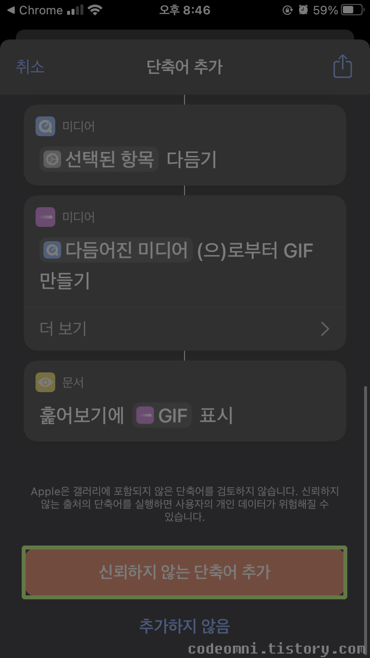 ▲ 신뢰하지 않는 단축어 추가를 터치합니다.