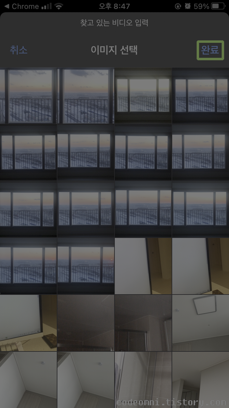 ▲ 변환할 비디오를 선택 후 완료를 터치합니다.