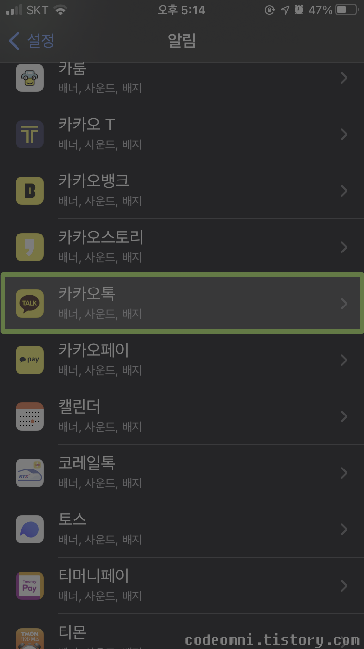이번 포스팅은 아이폰의 카카오톡 앱에서 알림 모두 끄기 켜기입니다.