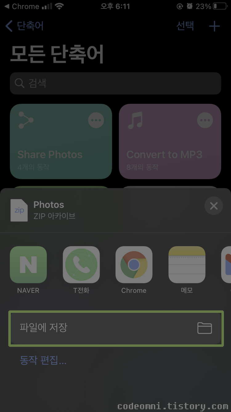 이번 포스팅은 아이폰의 단축어로 비디오 파일을 zip파일로 압축하기입니다.