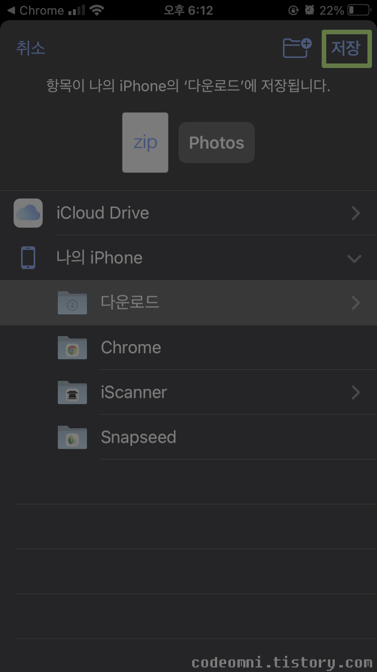 ▲ 저장할 위치를 선택 후 저장을 터치합니다.