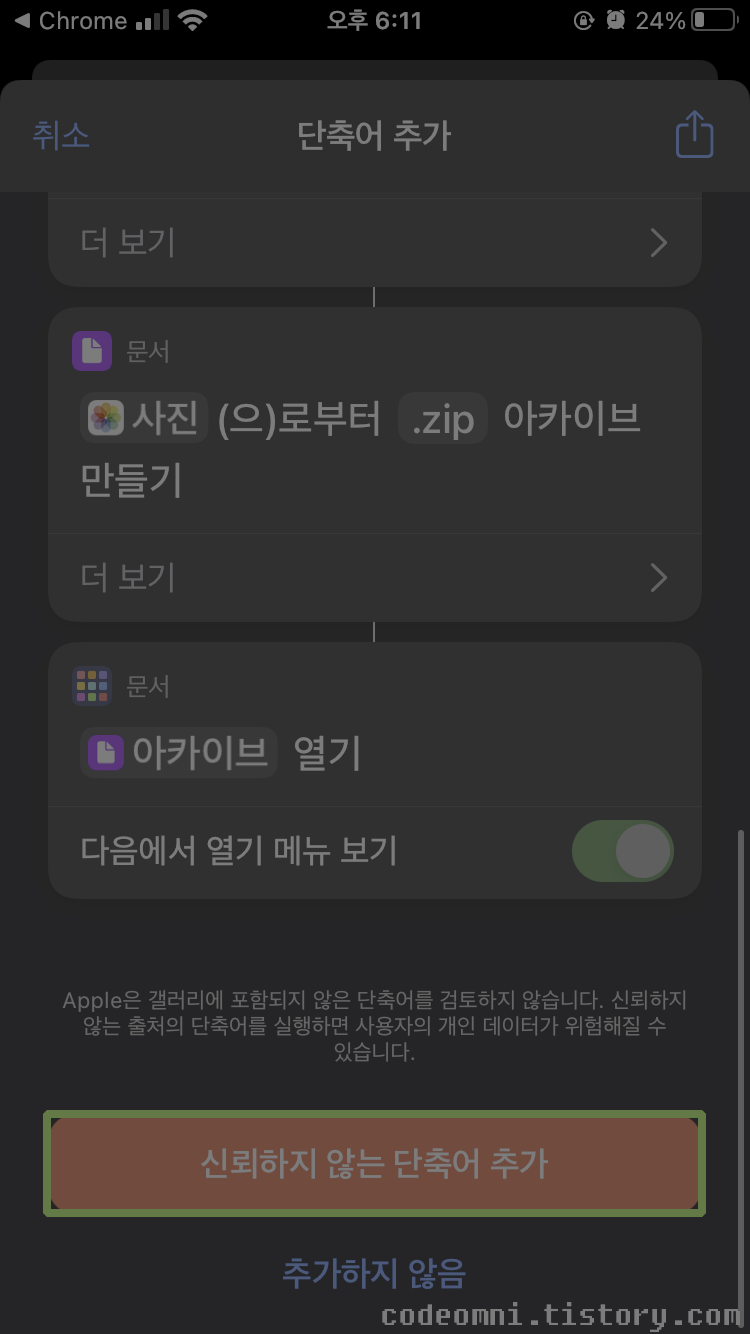 ▲ 신뢰하지 않는 단축어 추가를 터치합니다.