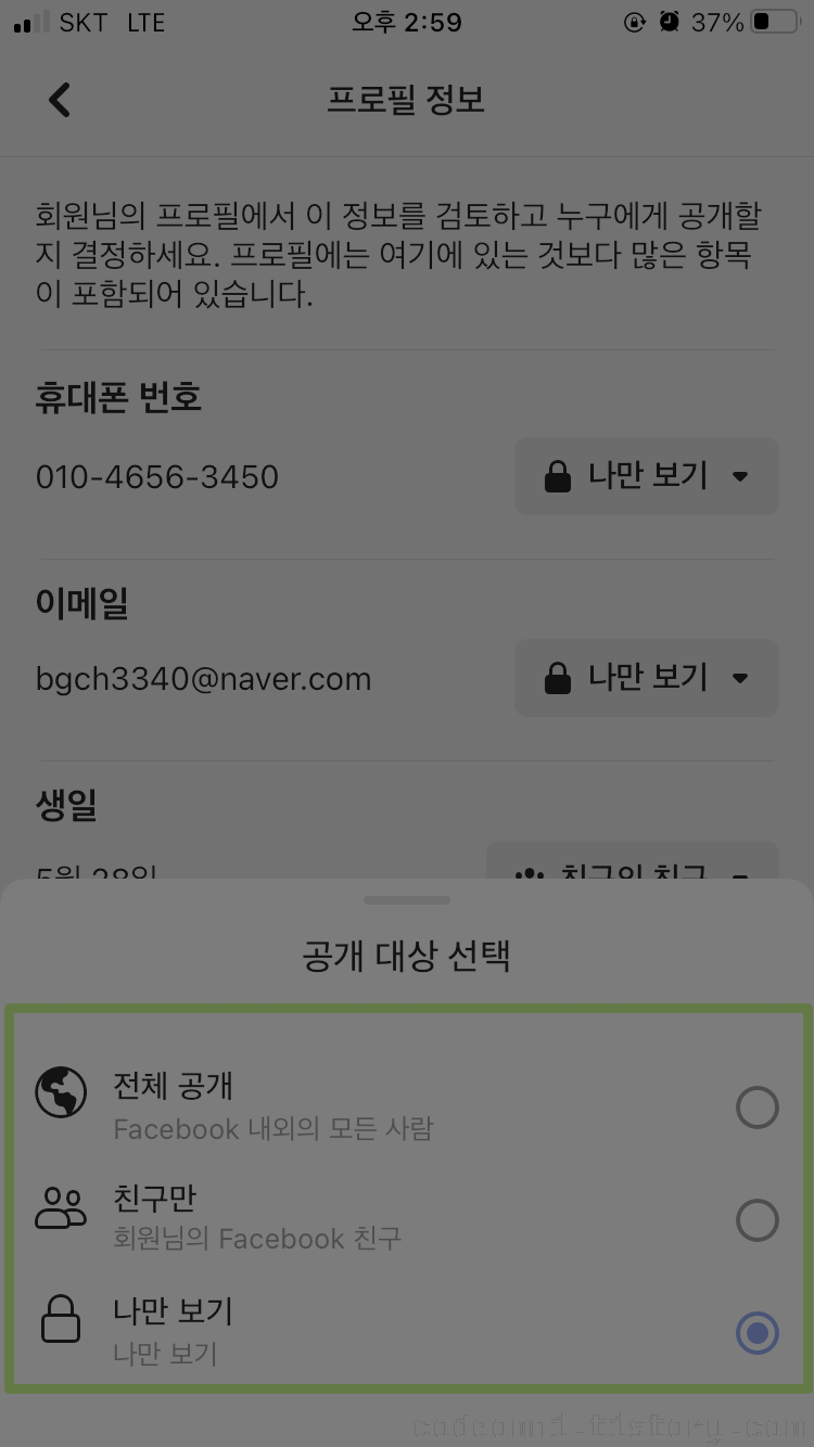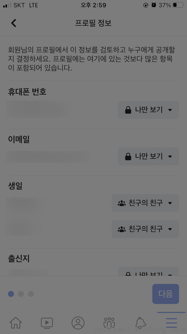 이번 포스팅은 페이스북 앱의 프로필 정보 공개 범위 변경입니다.