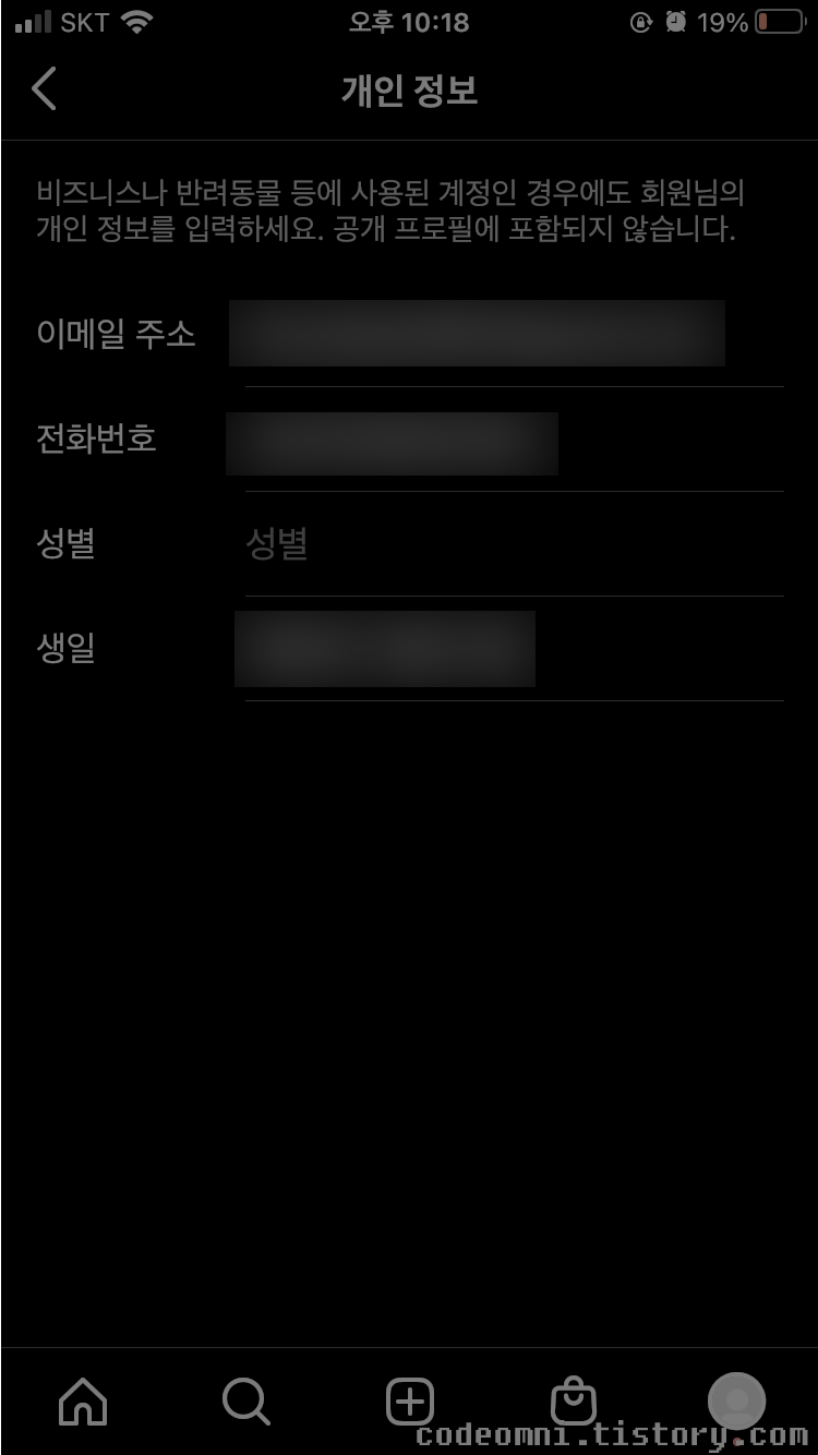 이번 포스팅은 인스타그램 앱에서 계정 개인 정보 수정하기입니다.