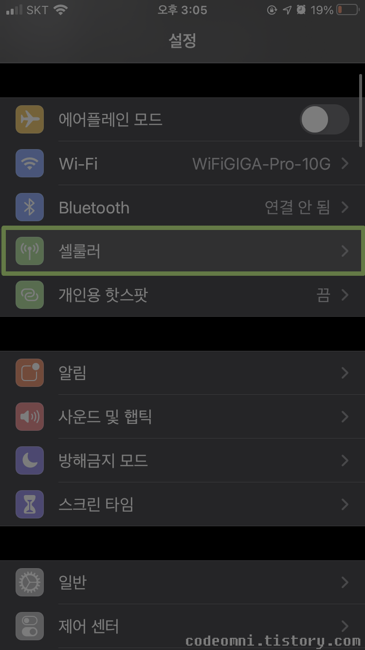 ▲ 설정에서 셀룰러를 터치합니다.