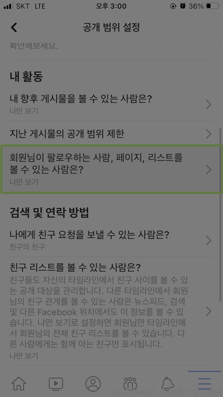 이번 포스팅은 페이스북 앱의 팔로우하는 사람, 페이지, 리스 공개 범위 변경입니다.