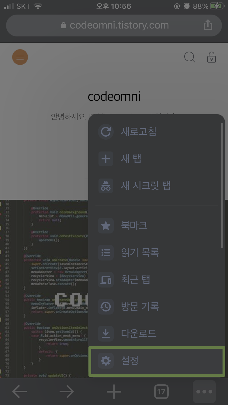 ▲ 메뉴에서 설정을 터치합니다.