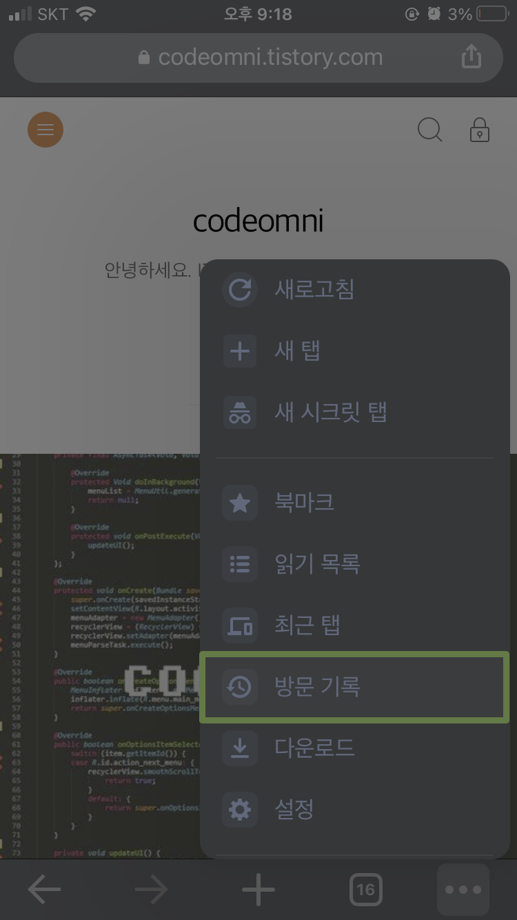 ▲ 메뉴에서 방문기록을 터치합니다.