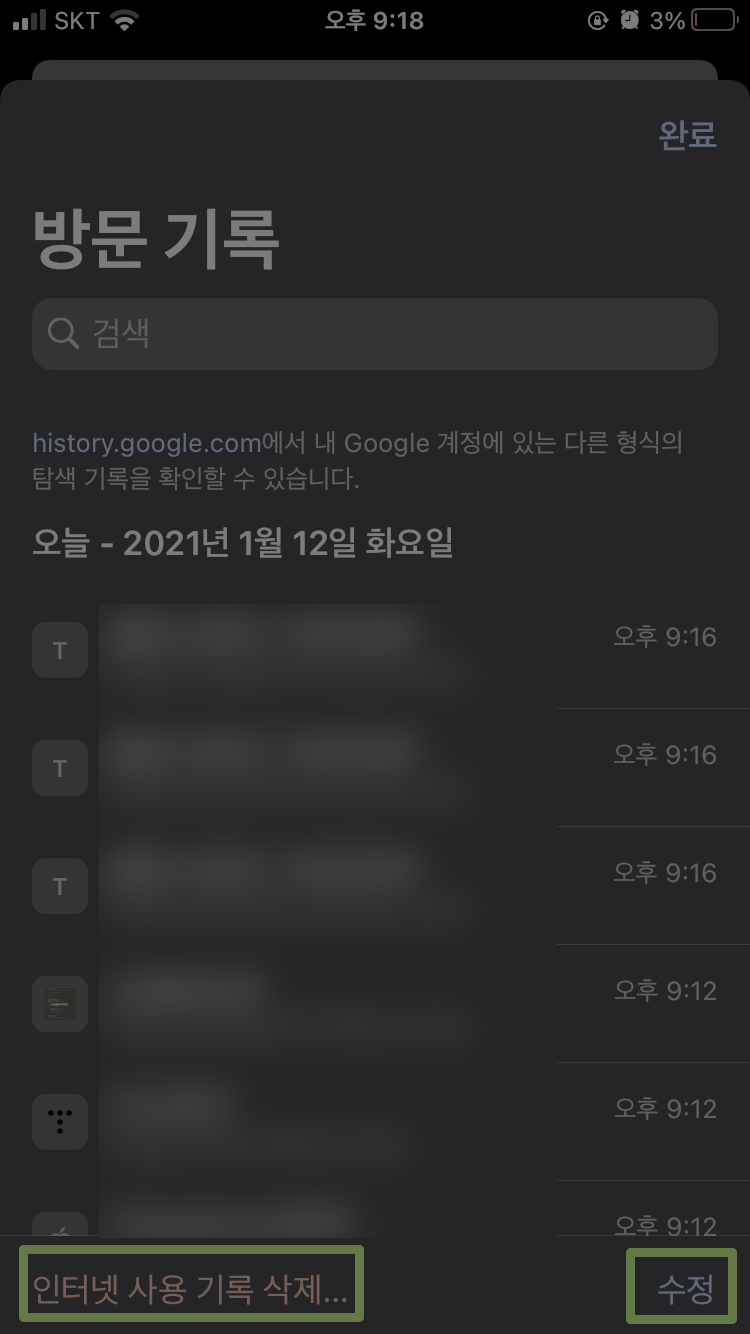 방문 기록에서 삭제도 가능합니다.