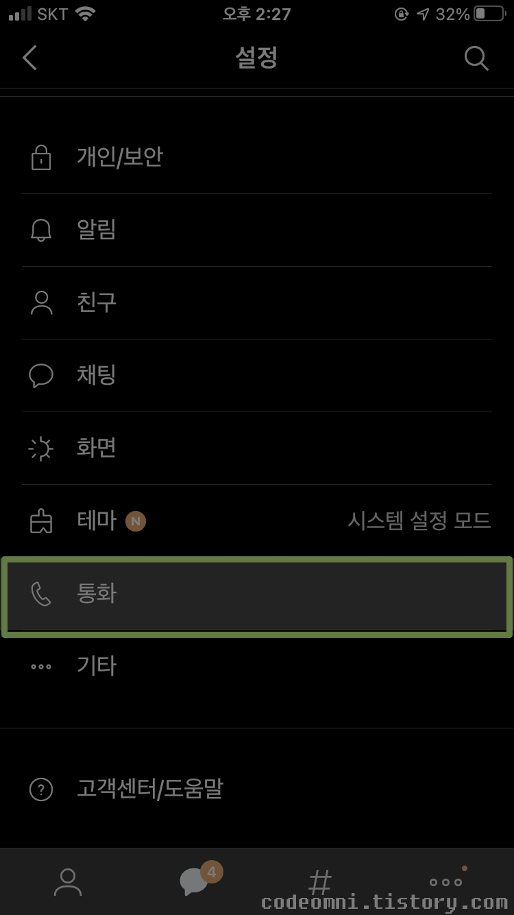 이번 포스팅은 카카오톡 앱의 무료 통화기록 남기기 끄기 및 켜기입니다.