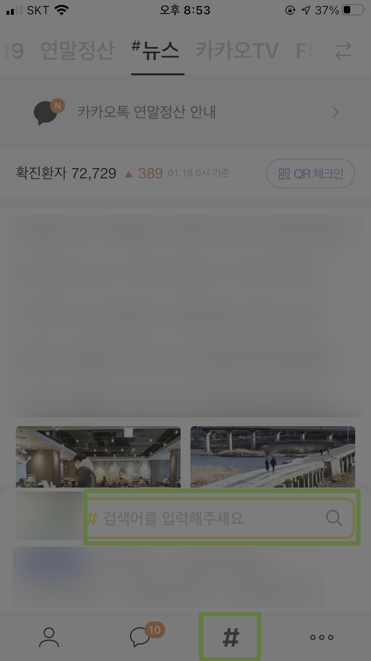 이번 포스팅은 카카오톡 앱의 샵 검색 기록 모두 제거하기입니다.
