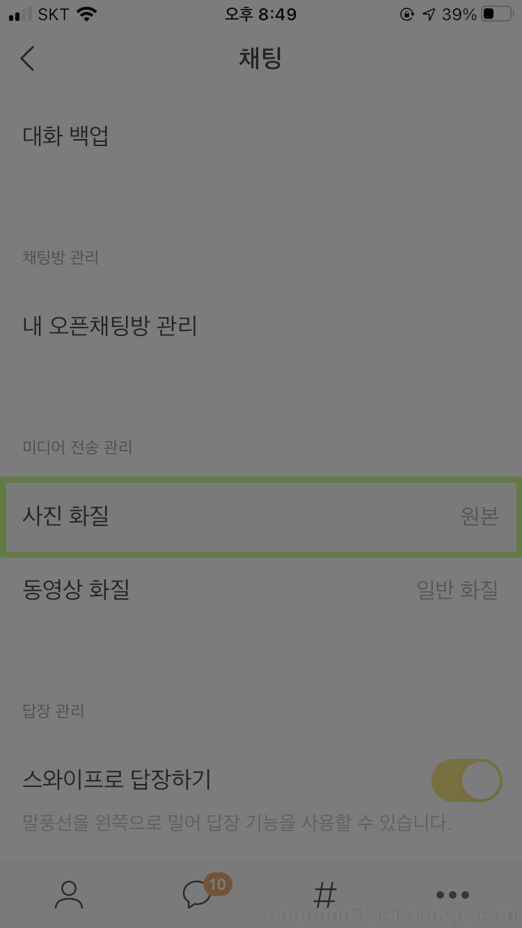 이번 포스팅은 카카오톡 앱의 사진 전송 화질 변경하기입니다.