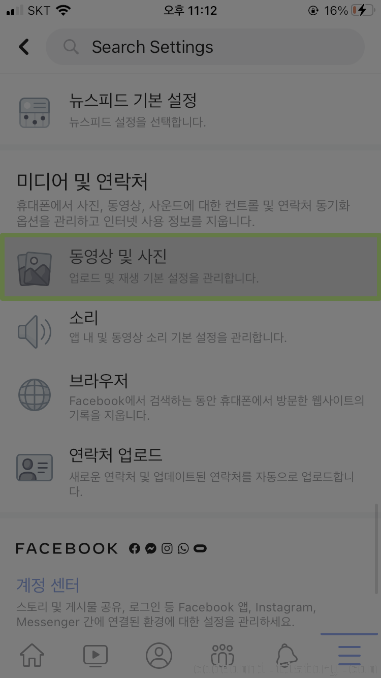 ▲ 공개 범위에서 동영상 및 사진을 터치합니다.