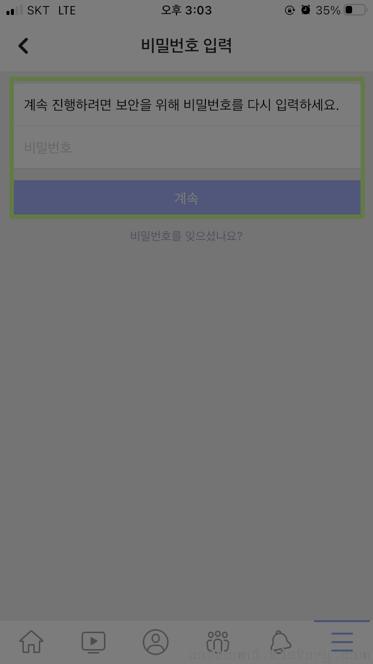 ▲ 비밀번호를 입력한 후 계속을 터치합니다.