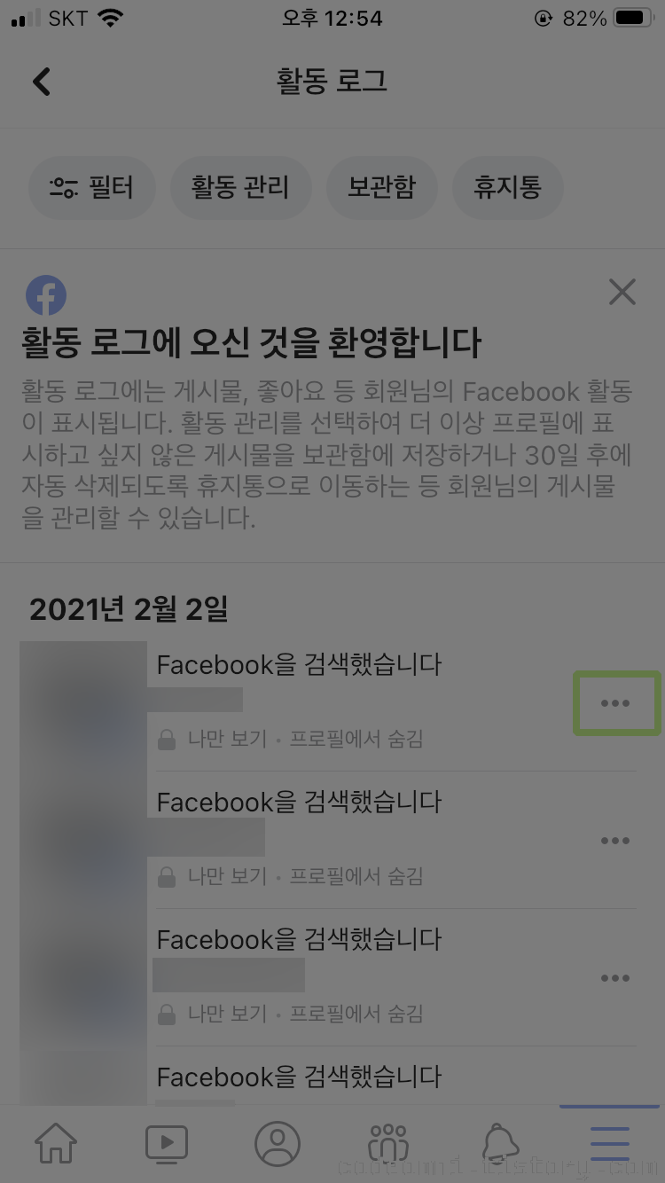 facebook에서 사용한 모든 로그를 확인하고 지우는 방법입니다.