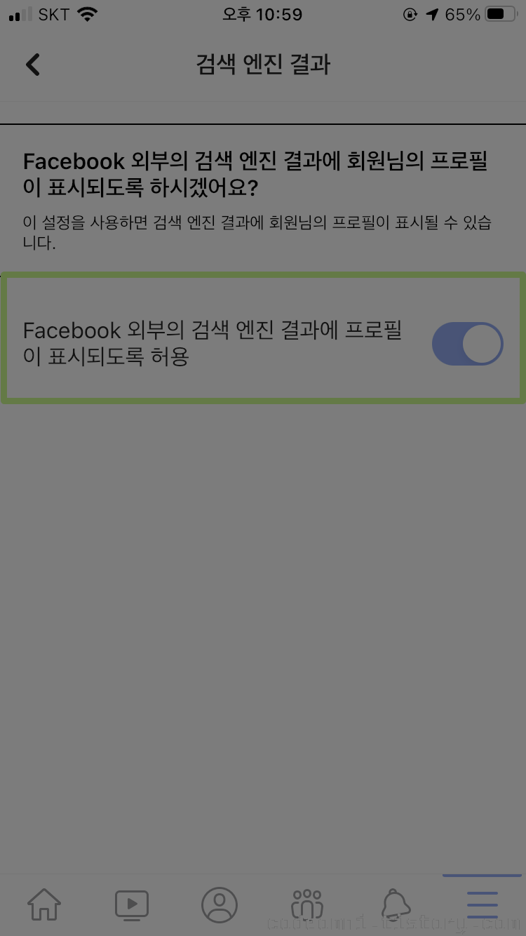 ▲ Facebook 외부의 검색 엔진 경과에 회원님의 프로필이 표시되도록 하시겠어요?를 터치합니다.