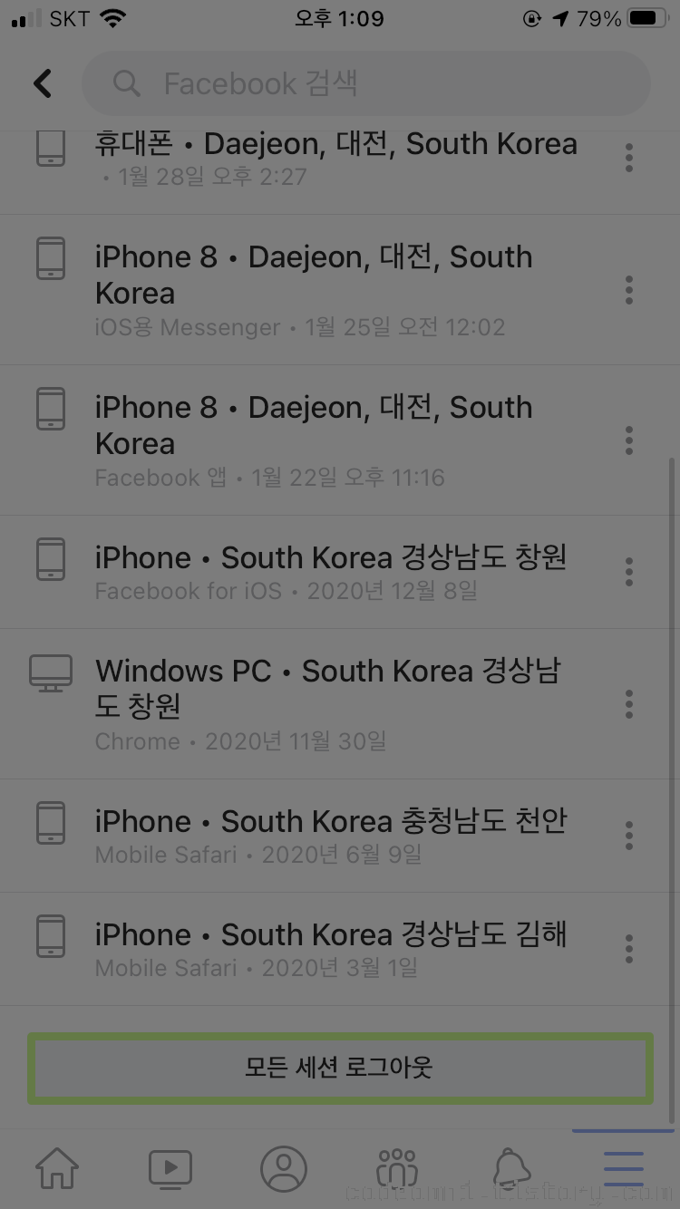 이번 포스팅은 페이스북 앱의 모든 세션 로그아웃하기입니다.