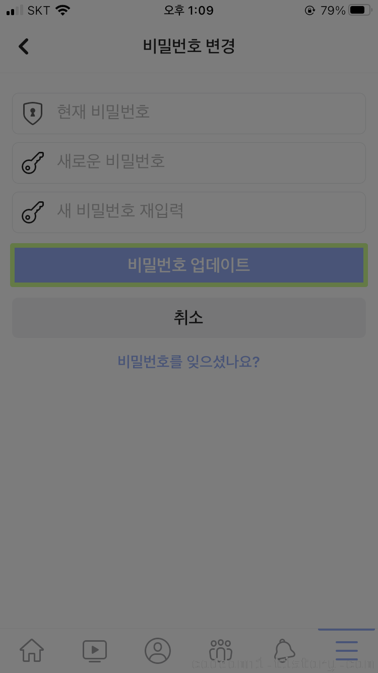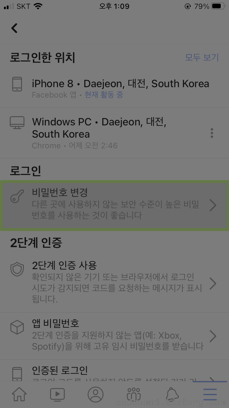 이번 포스팅은 페이스북 앱의 계정 비밀번호 변경하기입니다.