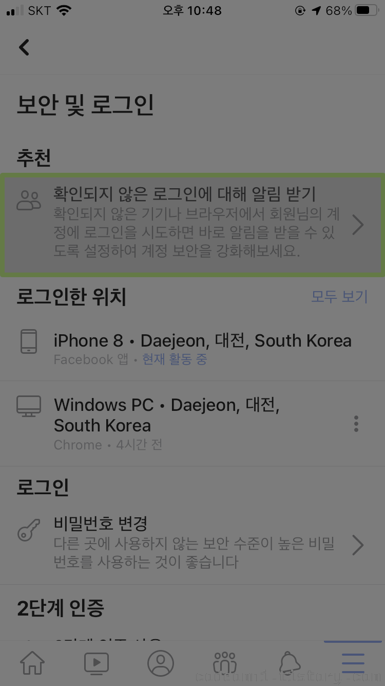 이번 포스팅은 페이스북 앱의 확인되지 않는 로그인 접속 알림 변경하기입니다.