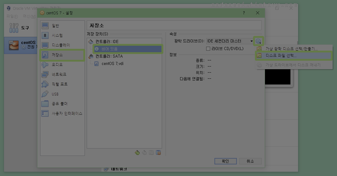 ▲ 저장소-비어있음-CD아이콘-디스크 파일 선택를 클릭합니다.