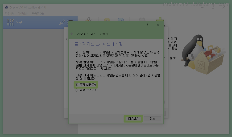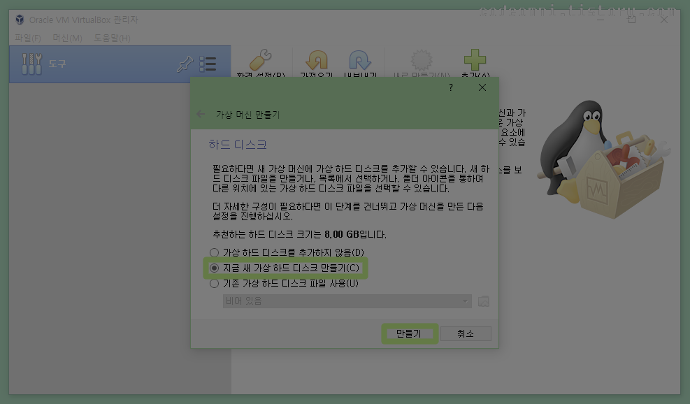 ▲ 지금 새 가상 하드 디스크 만들기(C)로 만듭니다.