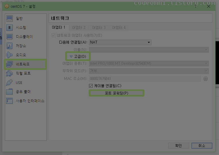 ▲ 네트워크-고급-포트 포워딩(P)을 클릭합니다.