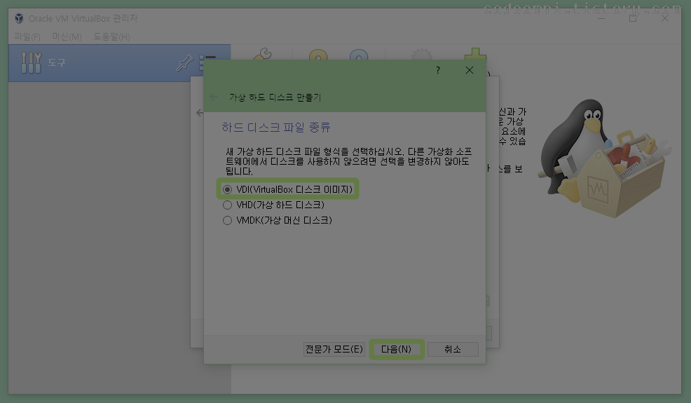▲ VDI로 설정합니다.
