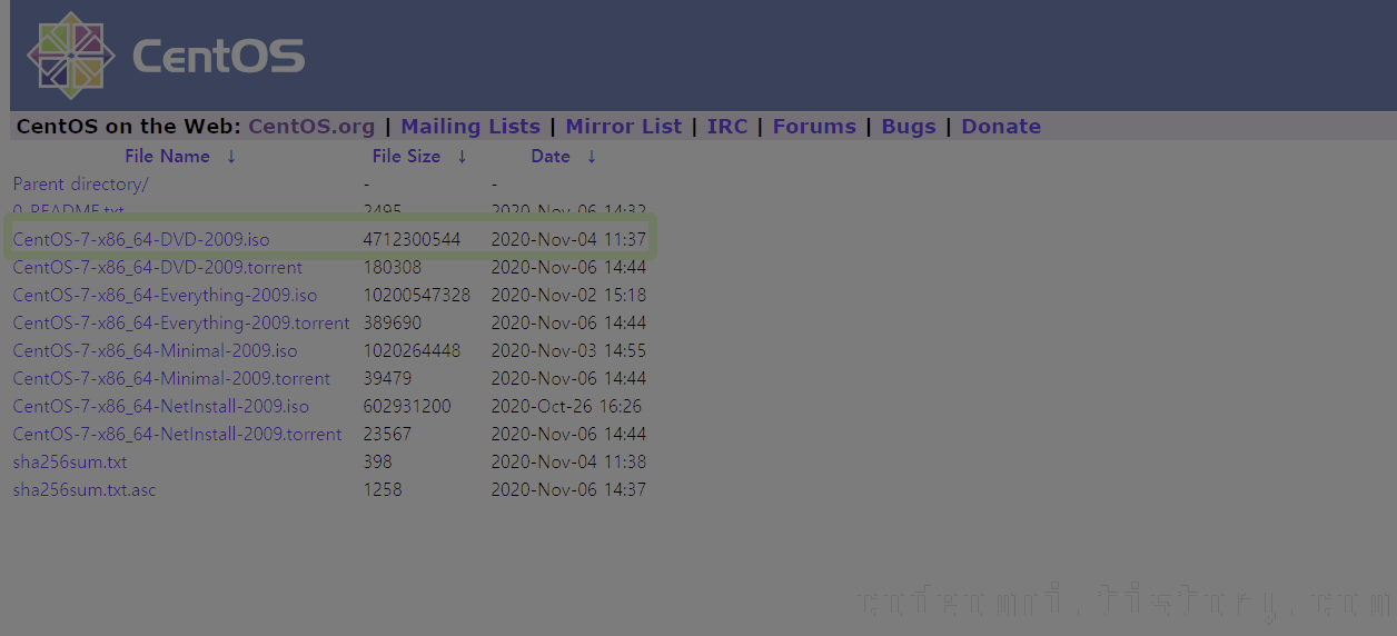 ▲ 링크에 들어가서 설치할 Cent OS의 .iso를 다운로드 합니다.