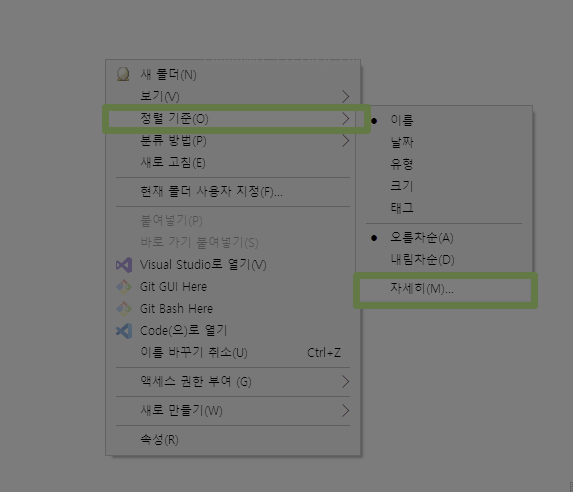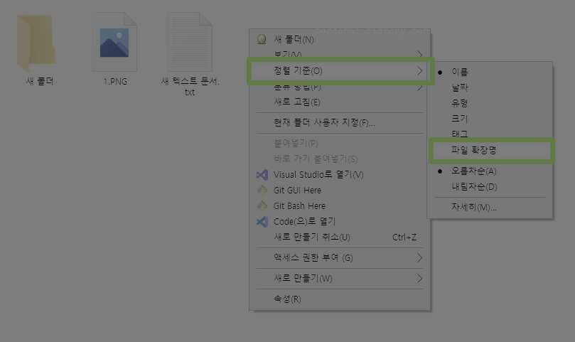 ▲ 설정할 폴더에서 우클릭한 후 정렬 기준(O) - 파일 확장명을 클릭합니다.