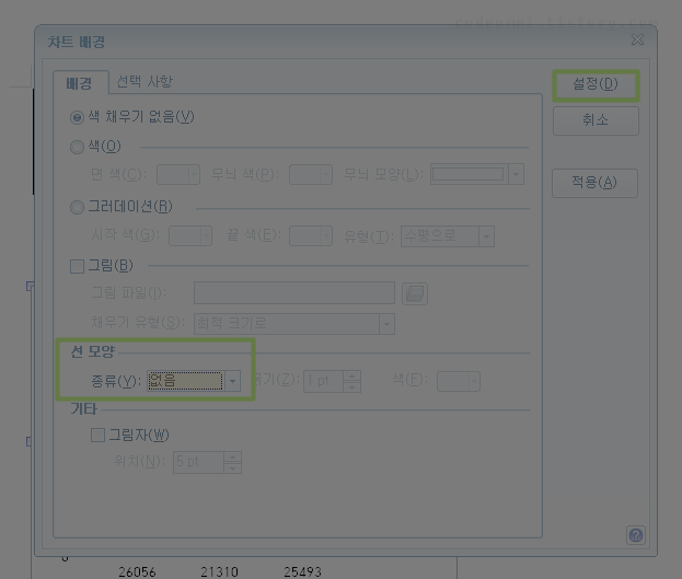 차트의 테두리의 선을 없음으로 설정하는 방법입니다.