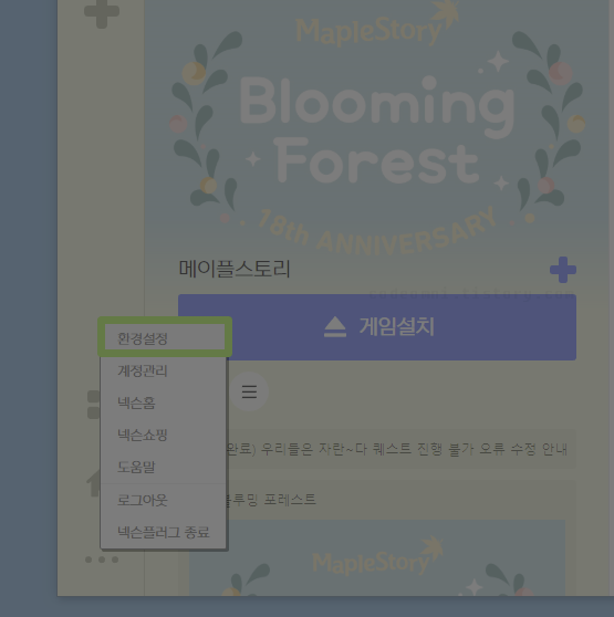 ▲ 메뉴에서 환경설정을 클릭합니다.