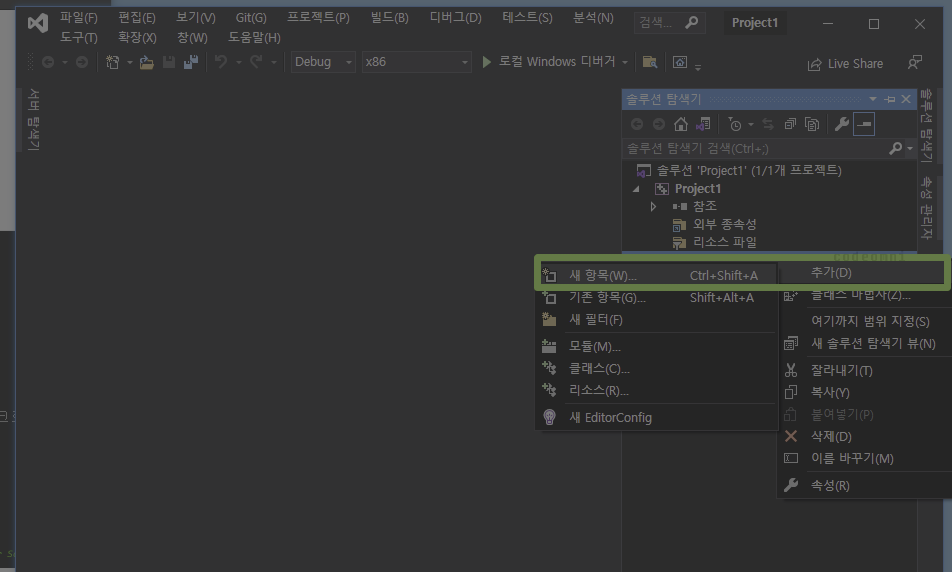 ▲ 솔수션 탐색기에서 새 파일을 추가합니다.