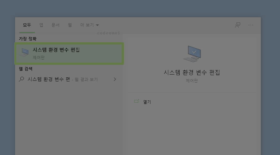 ▲ 검색에서 시스템 환경 변수 변집을 클릭합니다.