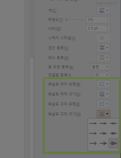 ▲ 화살표 머리와 꼬리를 클릭하여 크기를 변경합니다.