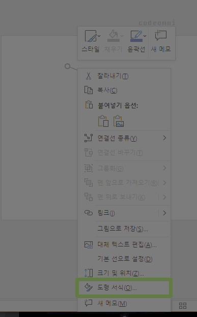 ▲ 그린 선을 선택하고 마우스 우클릭하여 도형 서식(O)을 선택합니다.