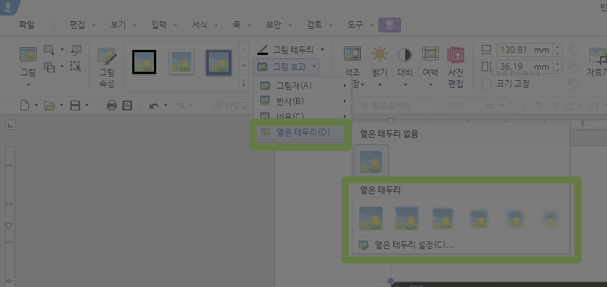 이번 포스팅은 한글2018에서 사진의 옅은 테두리 적용하기입니다.
